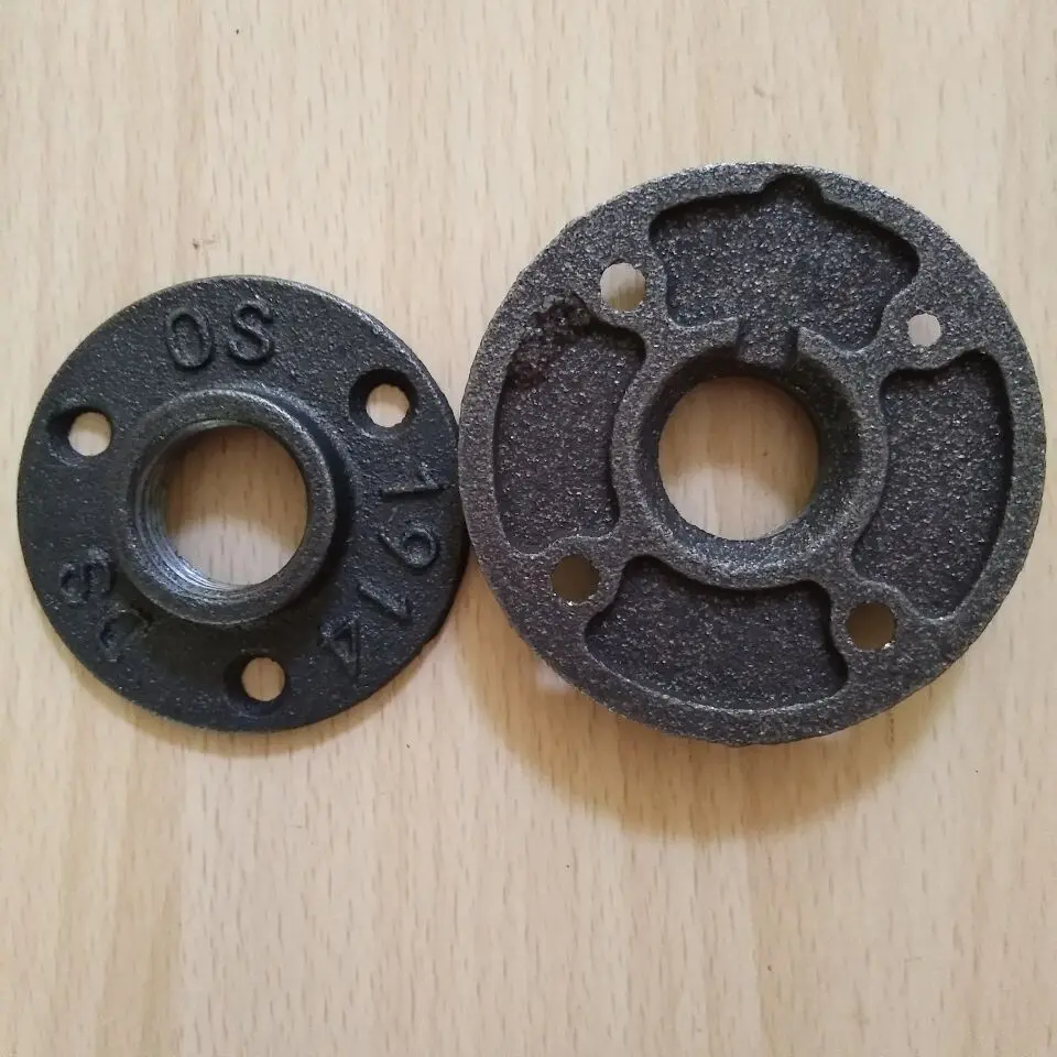 kruktafelbasis met 1/2" BS-draad swart rou retro smeedyster pyppassing vloerflens