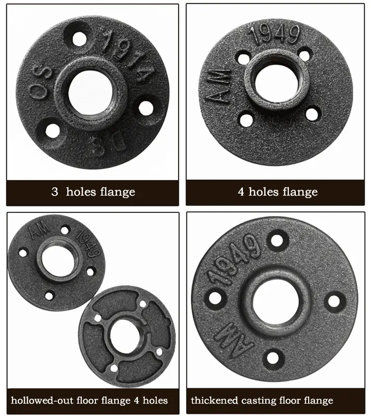 Description:floor flange Set of 3 shelves in cast iron pipe wood (light oak) Specification:Materials: cast ironConnection Method: screwSize: 3/4"Inner Diameter: 2.4cmNumber of Holes: 4Usage: floral, lamps, shelves, hanging racks, industrial supplies, and so on.Quantity: 10pcs