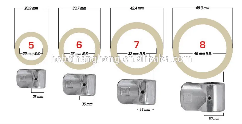 Available in 5 different sizes 26.9mm, 33.7mm, 42.4mm, 48.3mm (Scaffolding size) or 60.3mm