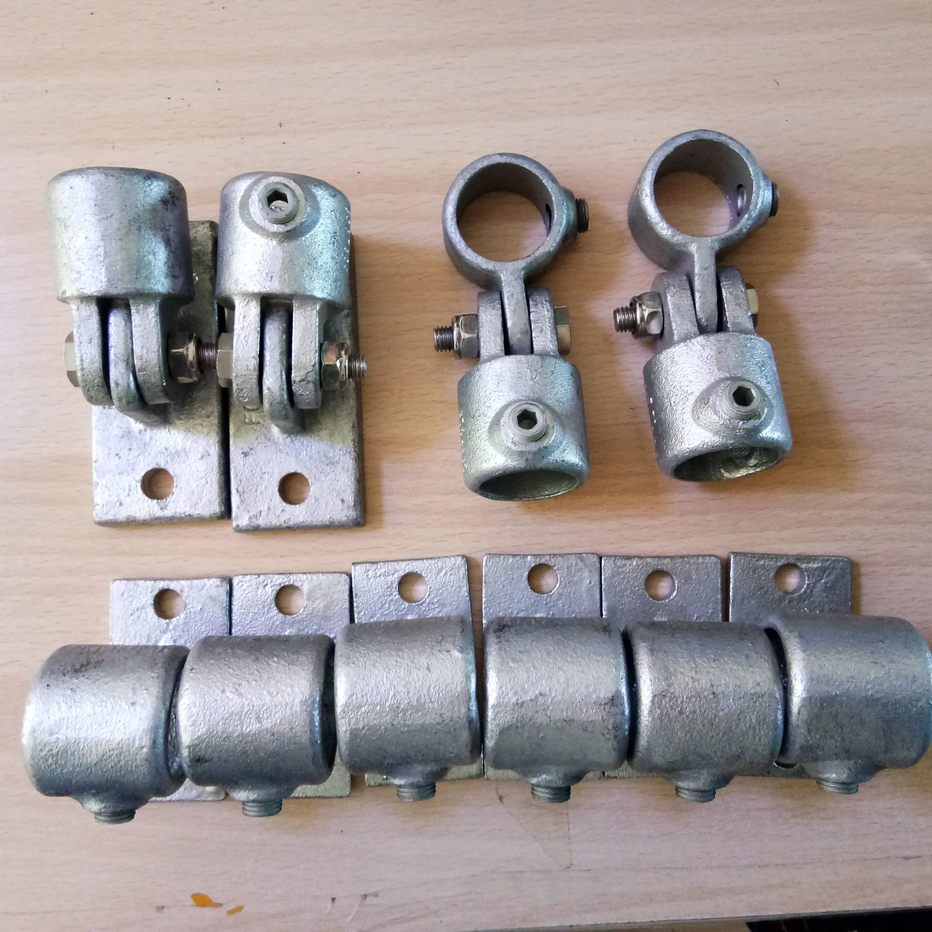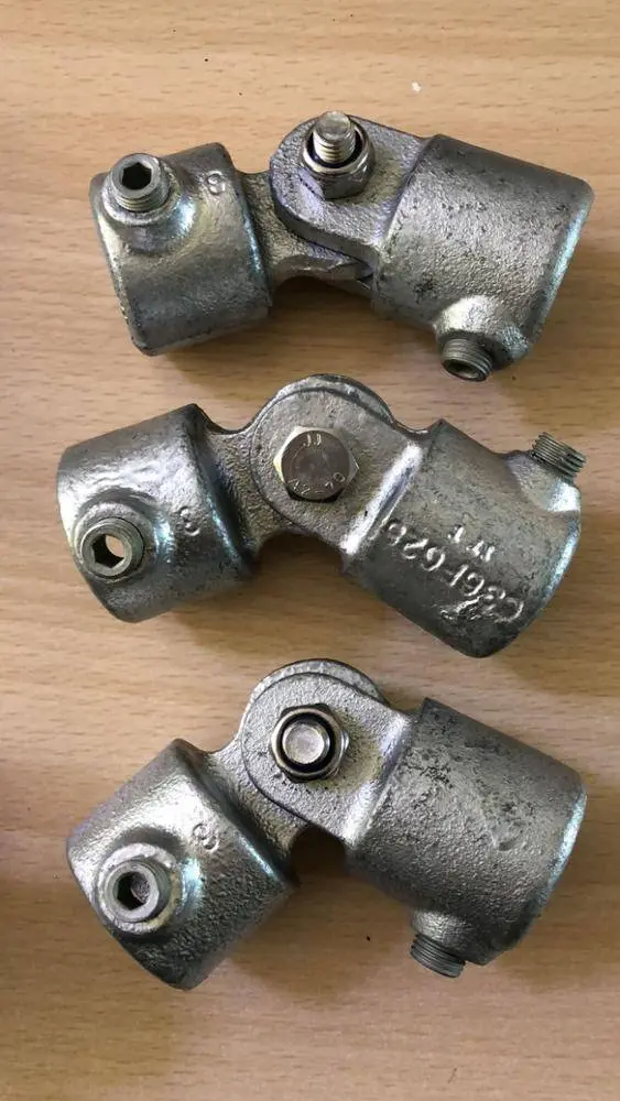 Key Clamps yog siv ua ke nrog galvanized steel tubing. Lub Ntsiab Clamps tau ruaj ntseg rau lub raj los ntawm txoj kev hexagon socket teem screws, uas yog nruj siv ib qho tseem ceeb allen los yog ratchet spanner los tsim ib tug ruaj xauv ntawm lub clamp thiab lub raj. Lub sharpened npoo ntawm lub qhov (socket) teem screws zoo 'tom' rau hauv qhov chaw ntawm lub raj tsim kom muaj kev sib txuas.