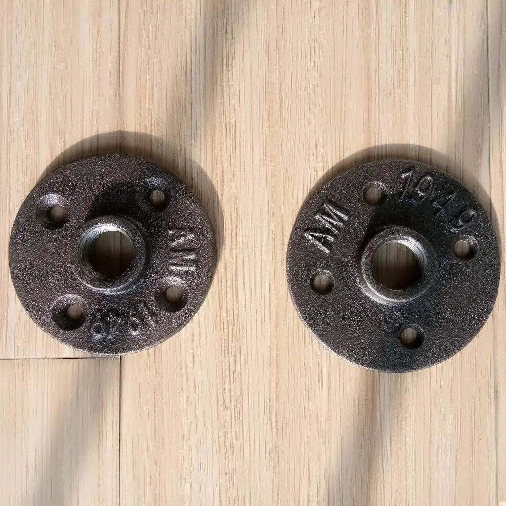 pipe fittings DN15 floor flange which pipe floor flange and malleable pipe fittings,galvanized malleable pipe fittings are our strong products ,Malleable iron pipe and pipe fittings connected with pipe and pipe fittings are used in decoration and many other fields, for example,the bed,table,shelf,lamp.beautiful appearance,never rust, black iron pipe fittings thread elbow floor flange and other pipe fitting are popular and sell well in many countries in the world.