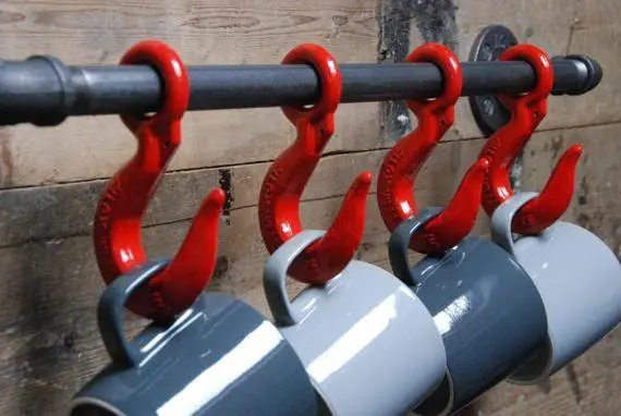 Skromny stojak na kubki został poddany obróbce Fe20six dzięki temu oszałamiającemu dodatkowi do każdej domowej kuchni lub przedsiębiorstwa komercyjnego, które chce dodać efekt wow. Nasze jaskrawoczerwone haczyki przyciągają uwagę tak samo jak industrialne detale na rurach i pomagają zamienić codzienność w centralny element za jednym machnięciem ręki.