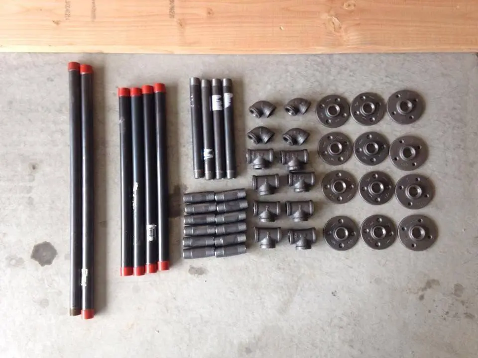 - flanșă neagră de podea cu carcasă de lemn sau palet din lemn.